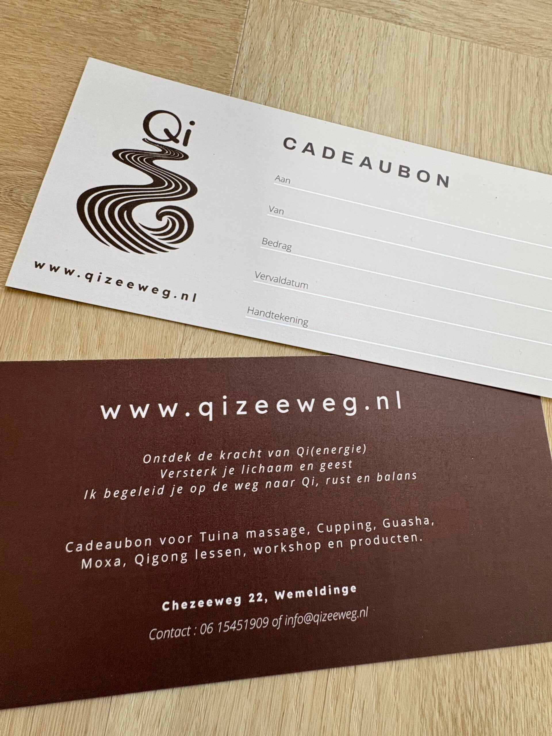 Wie een Qizeeweg cadeaubon koopt, ontvangt 10% korting op één therapeutische behandeling.